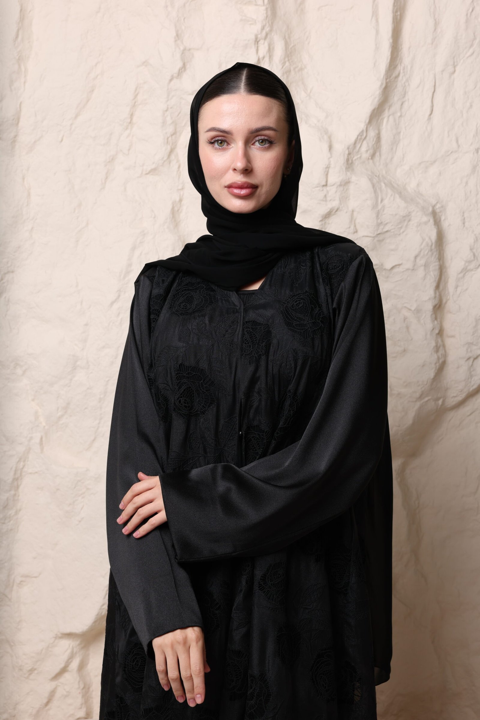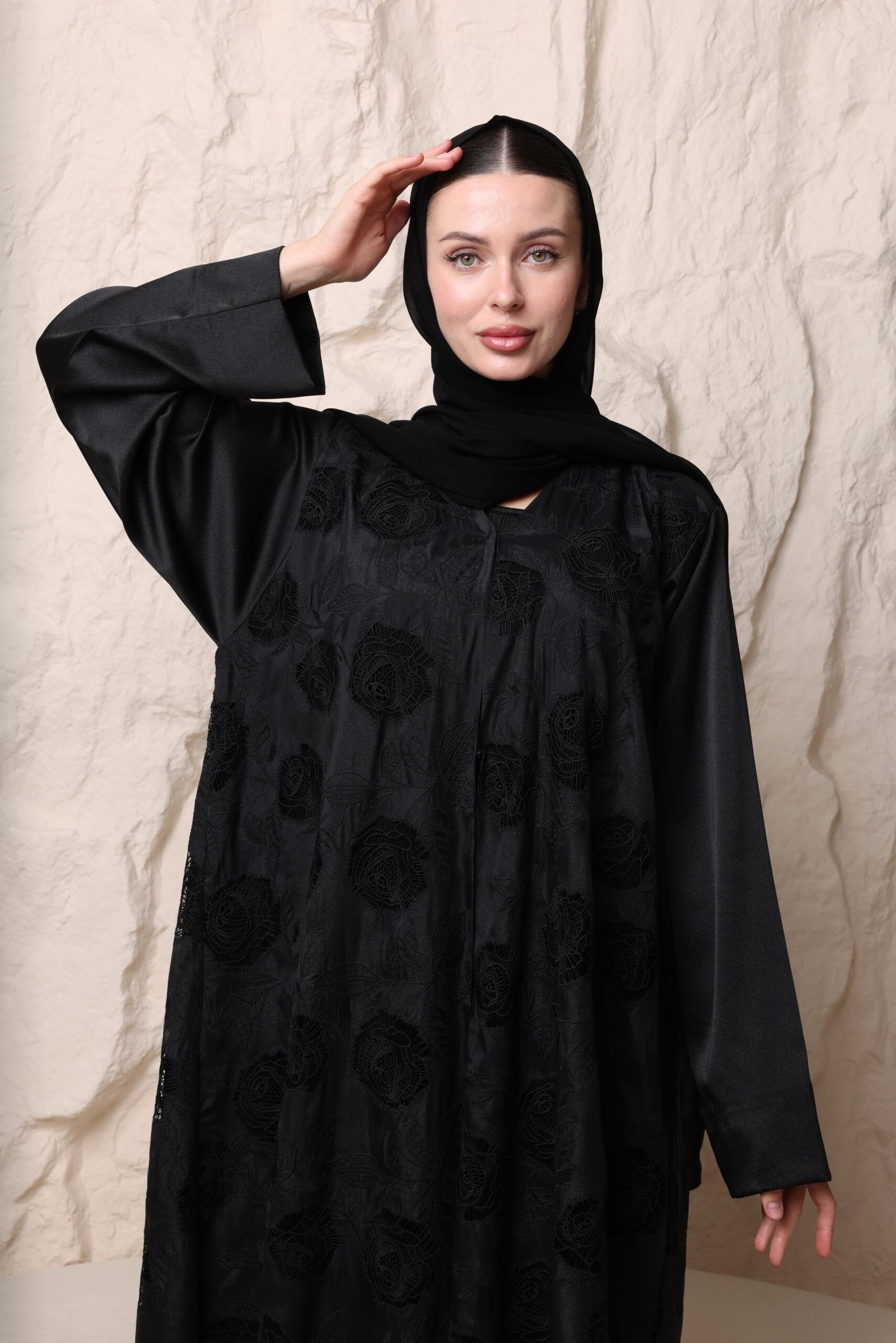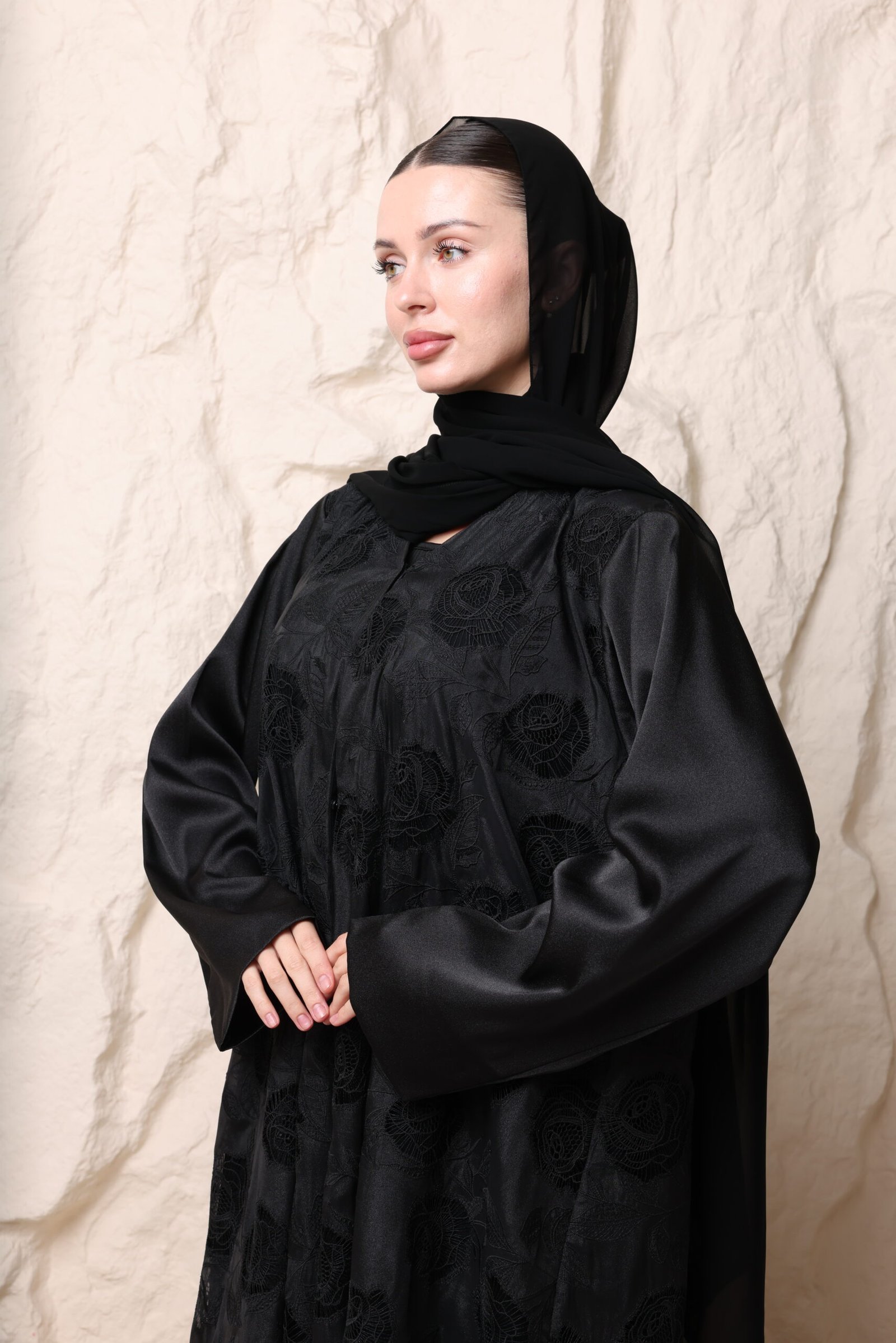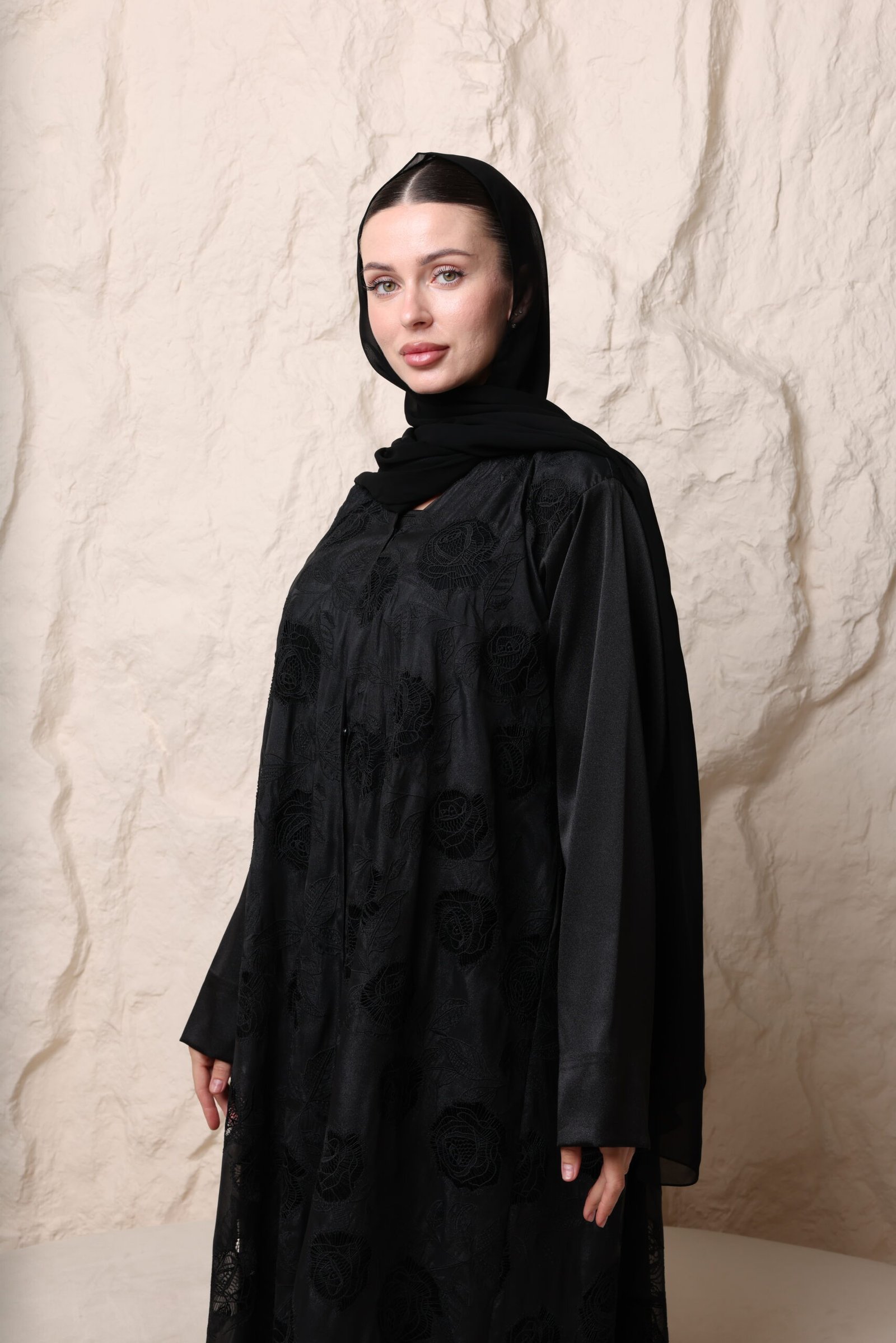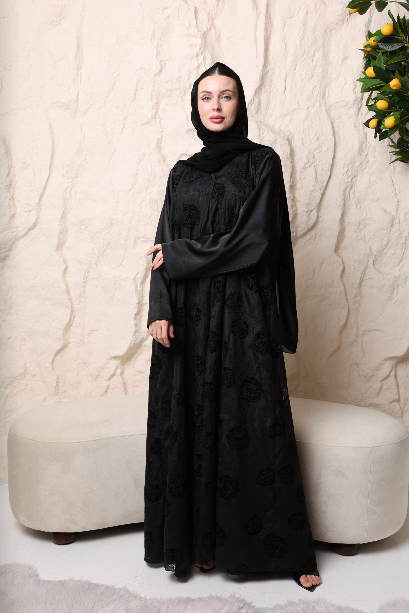عباية سودا مع ورود بارزة