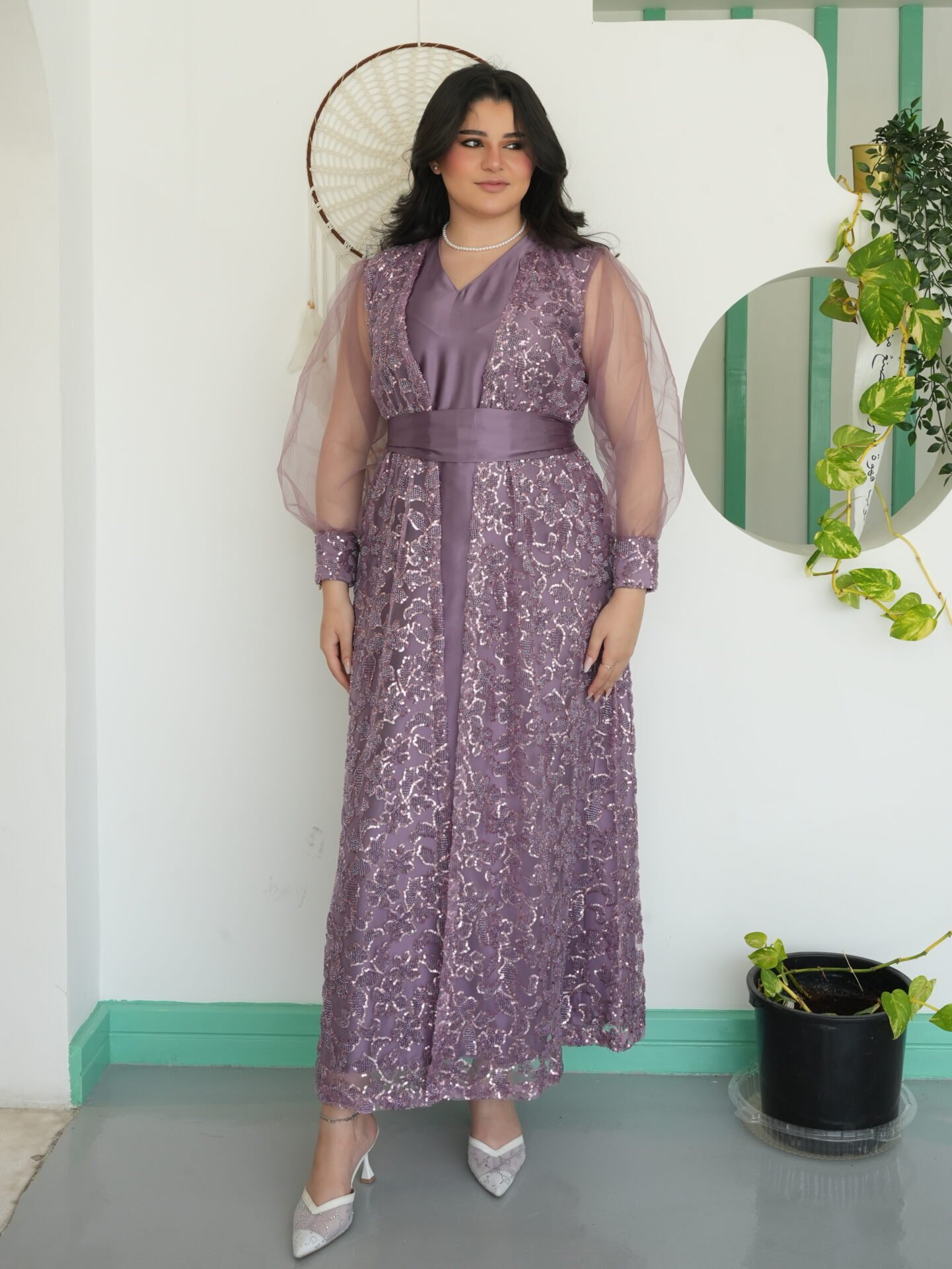 فستان شرقي من قطعتين وحزام