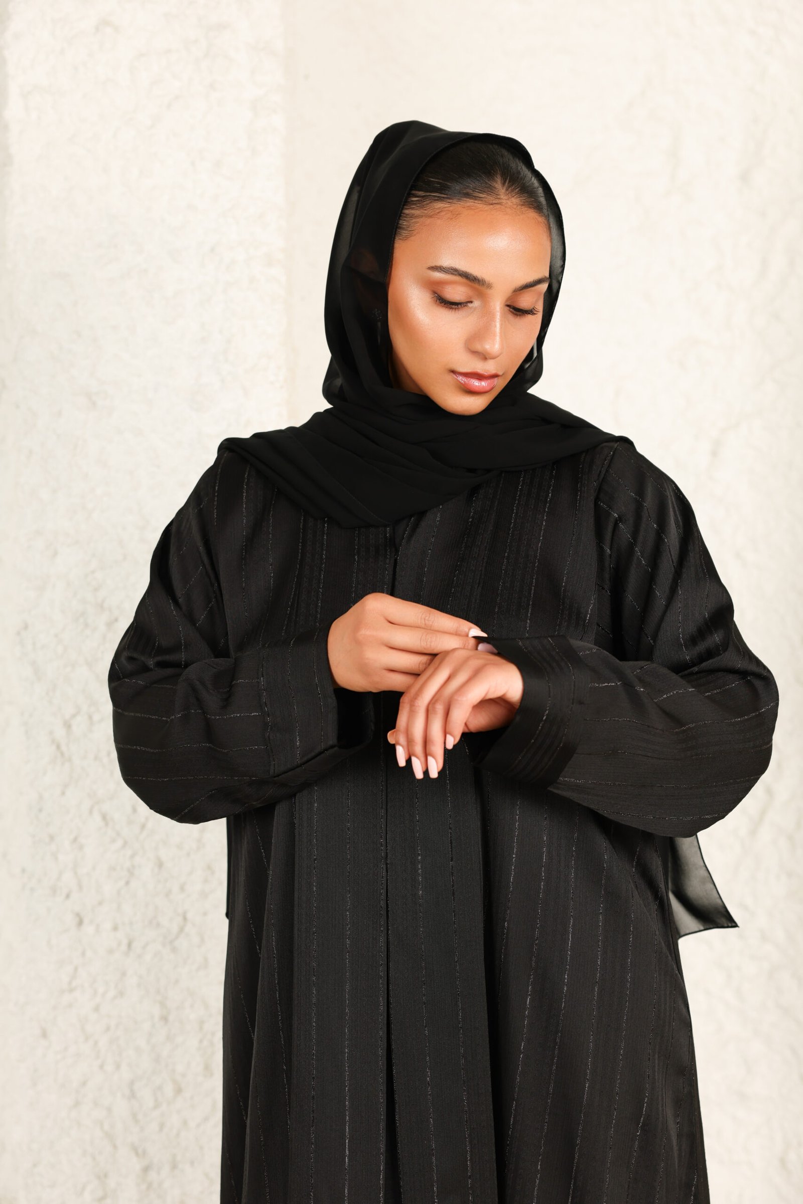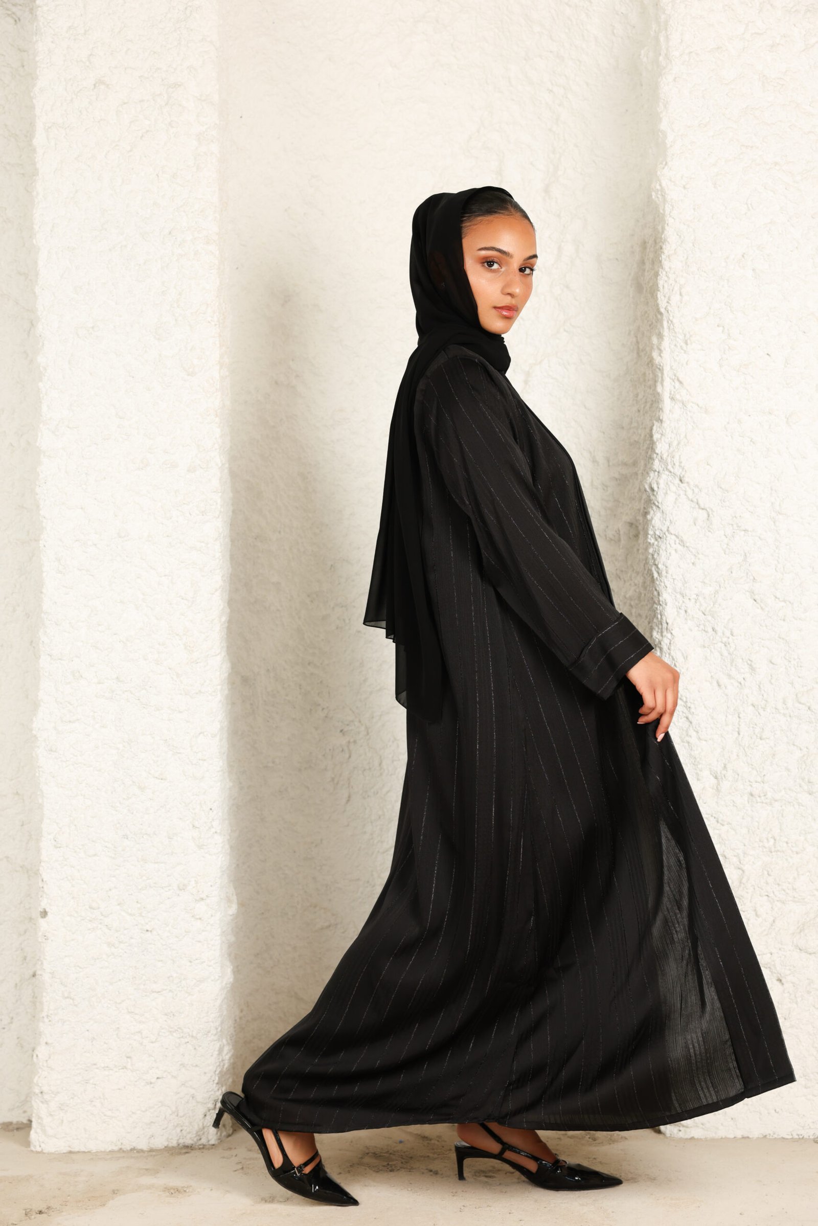 عباية سودا بخطوط لامعة