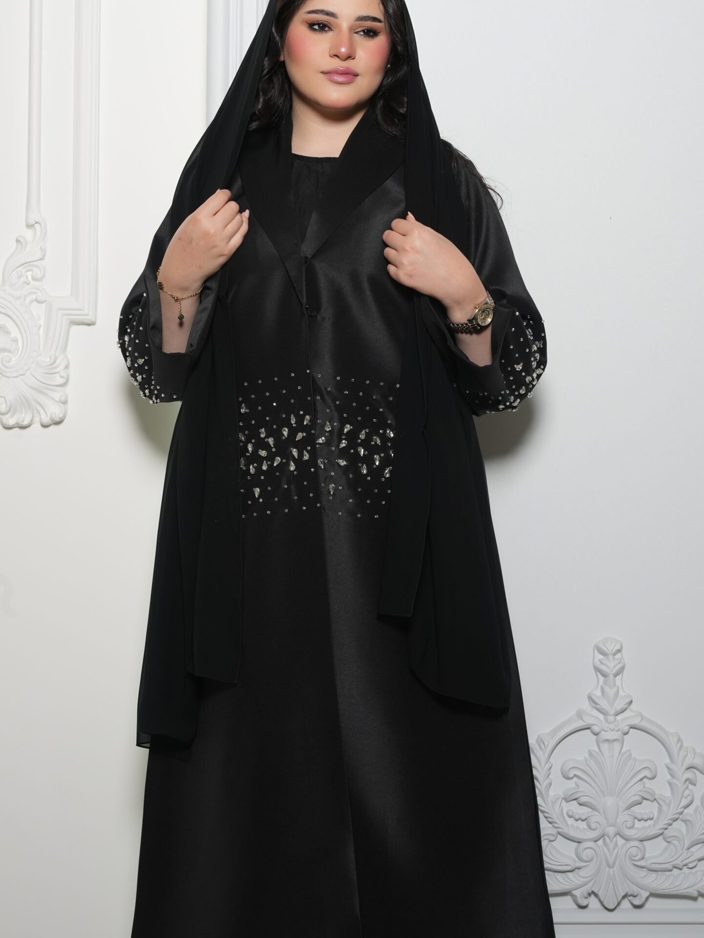 عباية ساتان فخمة مزينة بالكرستال